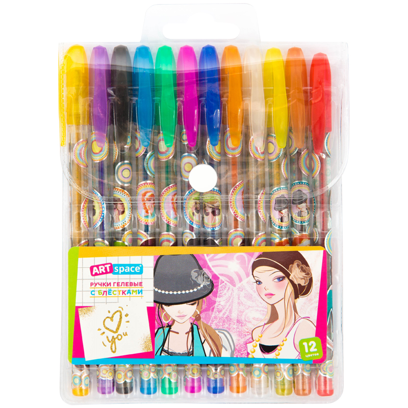 Набор гелевых ручек ArtSpace "Девочки", 12 цв., 1,0 мм, с блестками, ПВХ чехол, GGP12_3191 Вопросы по товару
