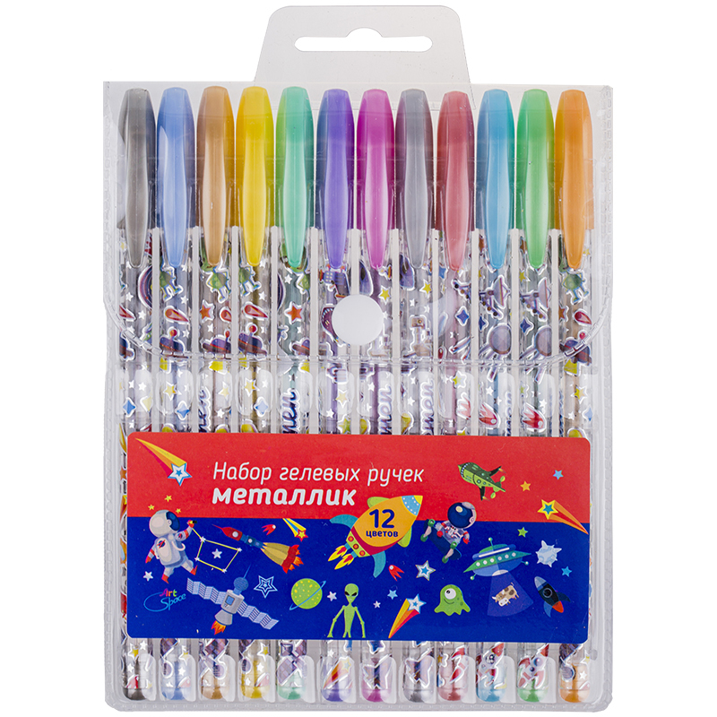 Набор гелевых ручек ArtSpace "Космонавты", 12 цв., 1,0 мм, металлик, ПВХ чехол, MG12_7108 (3) Вопросы по товару