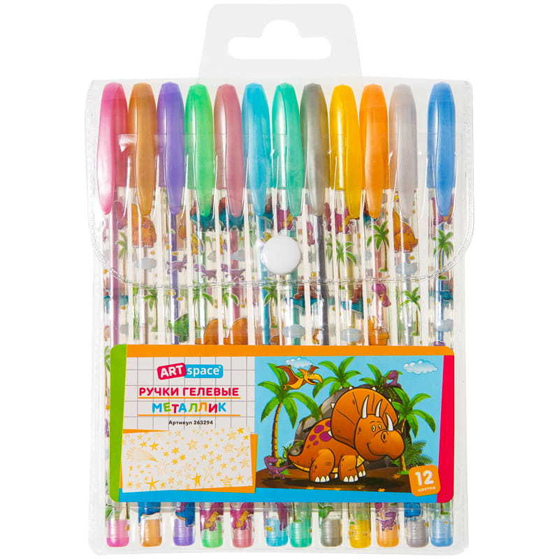 Набор гелевых ручек ArtSpace "Динозаврики", 12цв., 1,0мм, металлик, ПВХ чехол, 263294 (1) Вопросы по товару