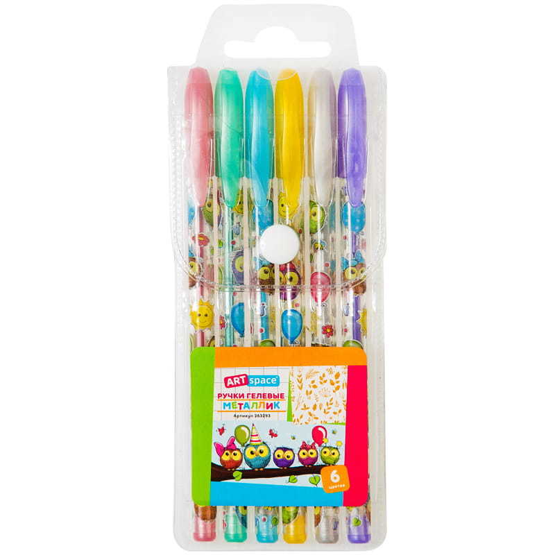 Набор гелевых ручек ArtSpace "Совята", 6цв., 1,0мм, металлик, ПВХ чехол, 263293 Вопросы по товару