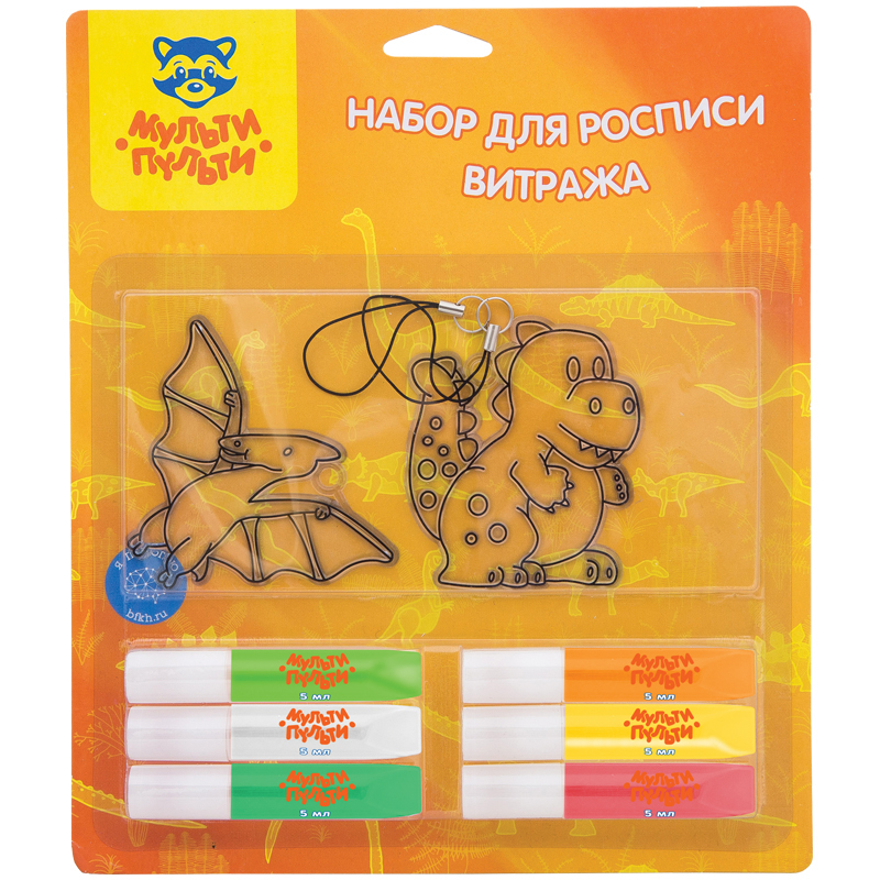 Набор для росписи витража Мульти-Пульти "Динозавры", 2 пластик. заготовки, блистер, WP_18638 Вопросы по товару