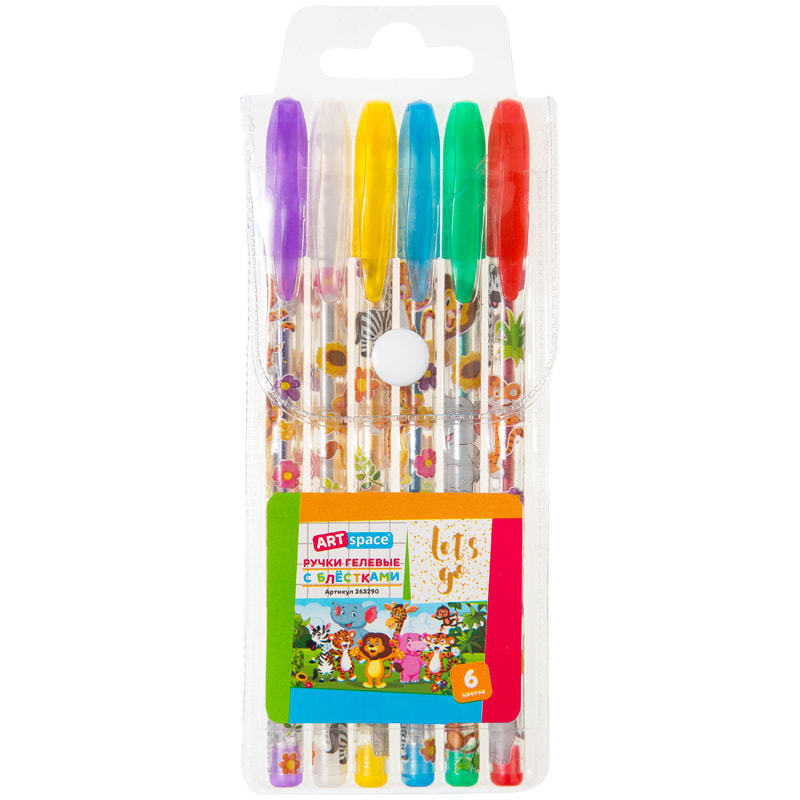 Набор гелевых ручек ArtSpace "Зверята", 6цв., 1,0мм, с блестками, ПВХ чехол, 263290 (1) Вопросы по товару