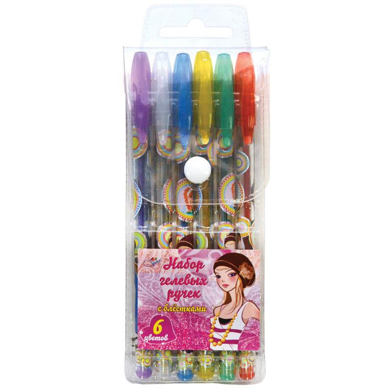 Набор гелевых ручек с блестками Девочки 6 цв. 1 мм блистер, GGR12_3190