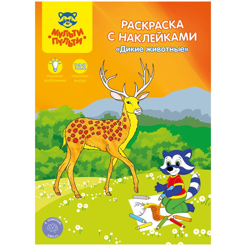 Раскраска А5+, Мульти-Пульти Животные, 12 стр., с загадками, наклейками, РС_15250