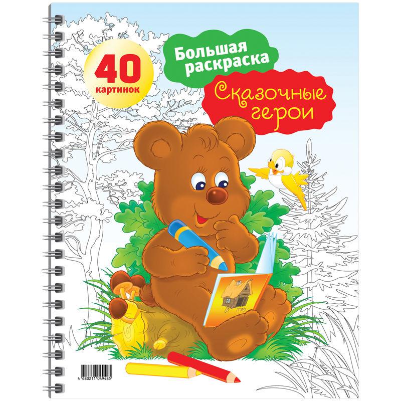Большая раскраска А4 на гребне, Сказочные герои, 40 стр., Рб40сп_6948 (1) Вопросы по товару