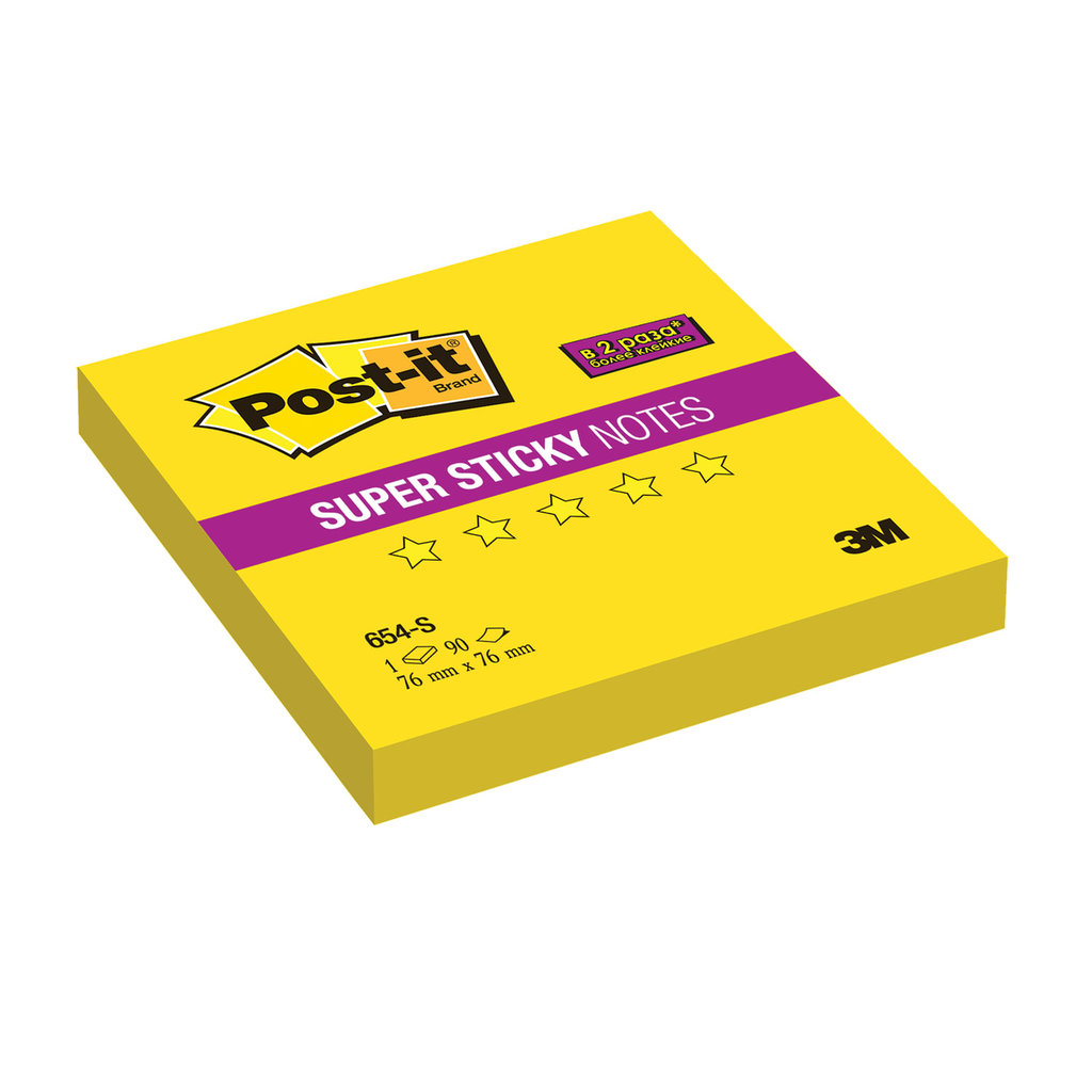 Блок самоклеящ. (стикер) POST-IT Super Sticky 76х76 мм, 90л., неоновый желтый, 654-S