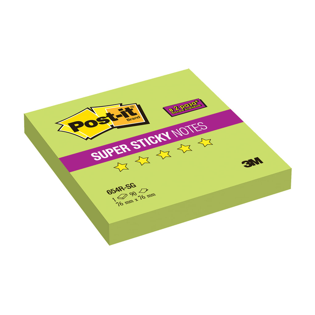 Блок самоклеящ. (стикер) POST-IT Super Sticky 76х76 мм, 90 л., неоновый зеленый, 654R-SG