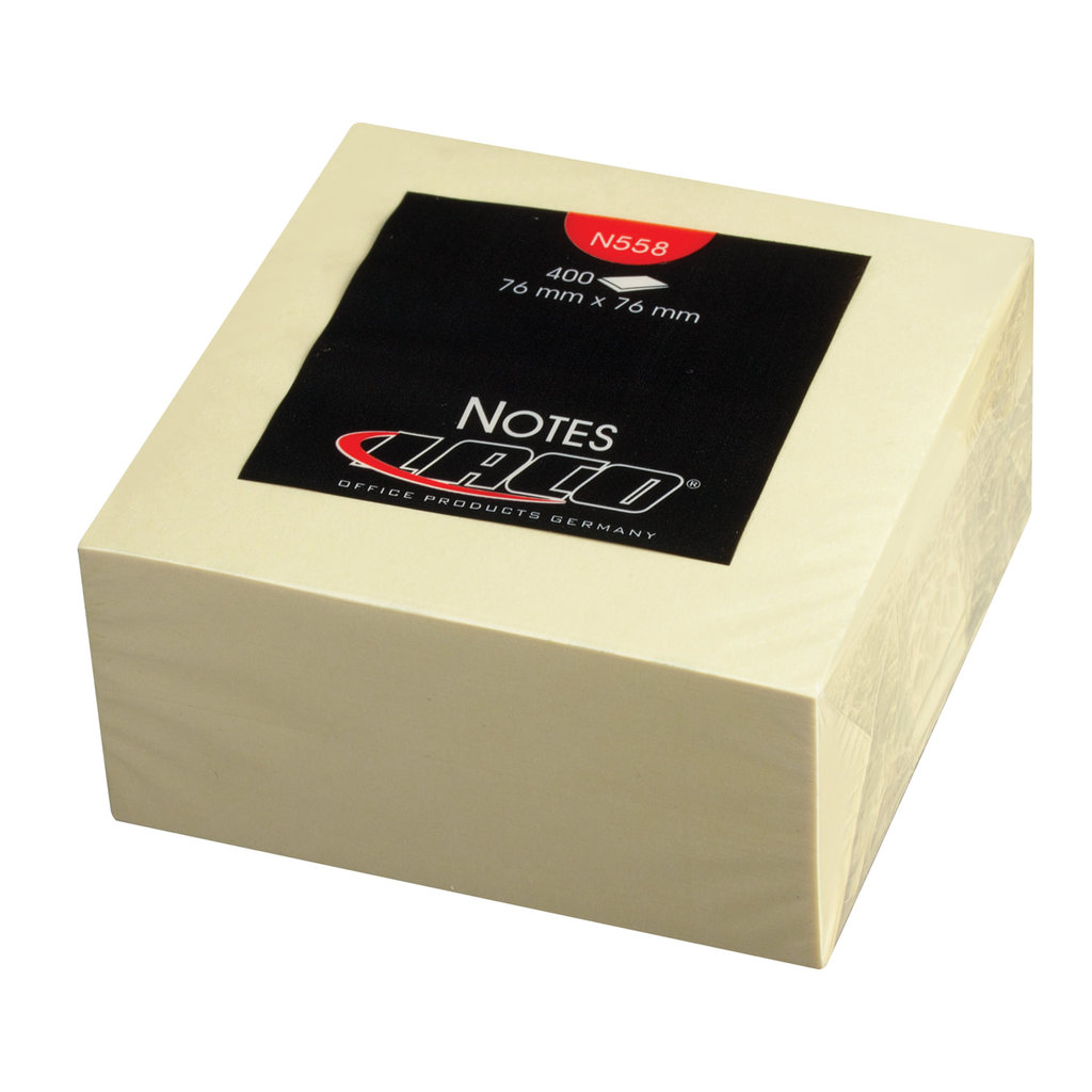 Блок самоклеящ. LACO (ЛАКО, Германия), 76х76мм, 400 листов, желтый, N 558