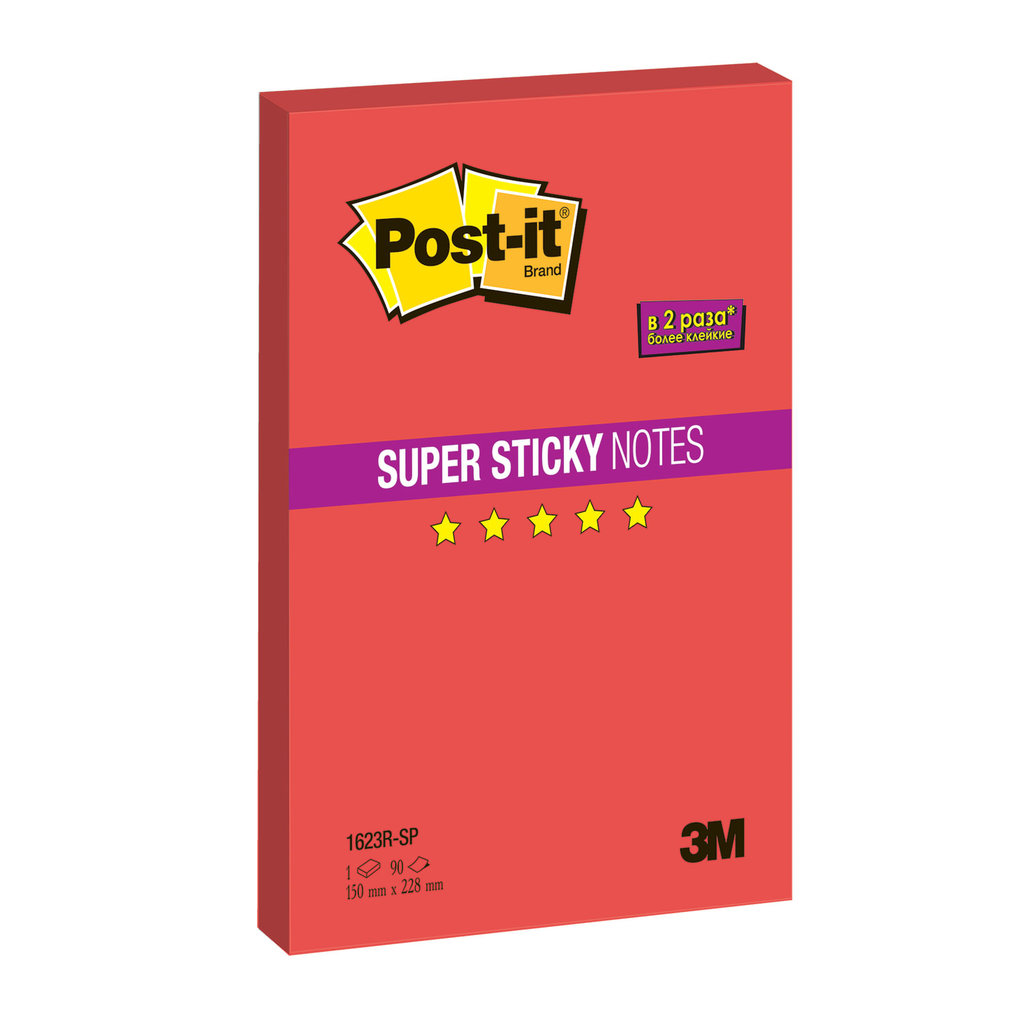 Блок самоклеящ. (стикер) POST-IT Super Sticky "Мегастикеры", 150х228 мм, 90 л., красный, 1623R-SP