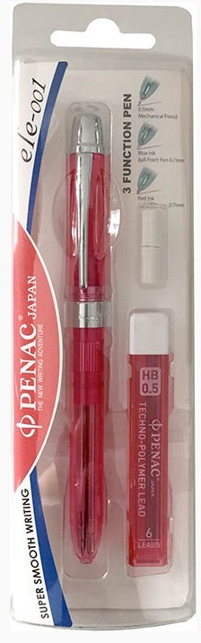 РУЧКА МНОГОФУНКЦИОНАЛЬНАЯ ELE-001: 2 СТЕРЖНЯ СИНЕГО И КРАСНОГО ЦВЕТОВ 0,35ММ + МЕХАНИЧЕСКИЙ КАРАНДАШ 0,5ММ НВ, ЛАСТИК, ЦВЕТ КОРПУСА: КРАСНЫЙ, В ПРОЗРАЧНОМ ФУТЛЯРЕ, БЛИСТЕР