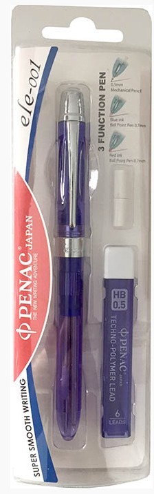 РУЧКА МНОГОФУНКЦИОНАЛЬНАЯ ELE-001: 2 СТЕРЖНЯ СИНЕГО И КРАСНОГО ЦВЕТОВ 0,35ММ + МЕХАНИЧЕСКИЙ КАРАНДАШ 0,5ММ НВ, ЛАСТИК, ЦВЕТ КОРПУСА: ФИОЛЕТОВЫЙ, В ПРОЗРАЧНОМ ПЛАСТИКОВОМ ФУТЛЯРЕ