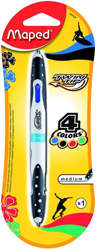 Многостержневая шариковая ручка Твин Тип, 4  цвета стержня: синий, черный, красный, зеленый, толщина линии 1 мм. Блистер