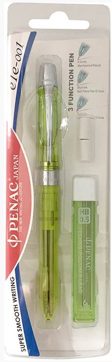 РУЧКА МНОГОФУНКЦИОНАЛЬНАЯ ELE-001: 2 СТЕРЖНЯ СИНЕГО И КРАСНОГО ЦВЕТОВ 0,35ММ + МЕХАНИЧЕСКИЙ КАРАНДАШ 0,5ММ НВ, ЛАСТИК, ЦВЕТ КОРПУСА: СВЕТЛО-ЗЕЛЕНЫЙ, В ПРОЗРАЧНОМ ПЛАСТИКОВОМ ФУТЛЯРЕ