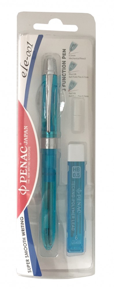 РУЧКА МНОГОФУНКЦИОНАЛЬНАЯ ELE-001: 2 СТЕРЖНЯ СИНЕГО И КРАСНОГО ЦВЕТОВ 0,35ММ + МЕХАНИЧЕСКИЙ КАРАНДАШ 0,5ММ НВ, ЛАСТИК, ЦВЕТ КОРПУСА: ГОЛУБОЙ, В ПРОЗРАЧНОМ ФУТЛЯРЕ, БЛИСТЕР