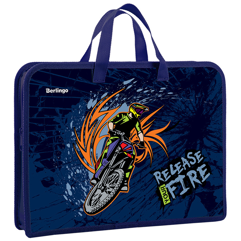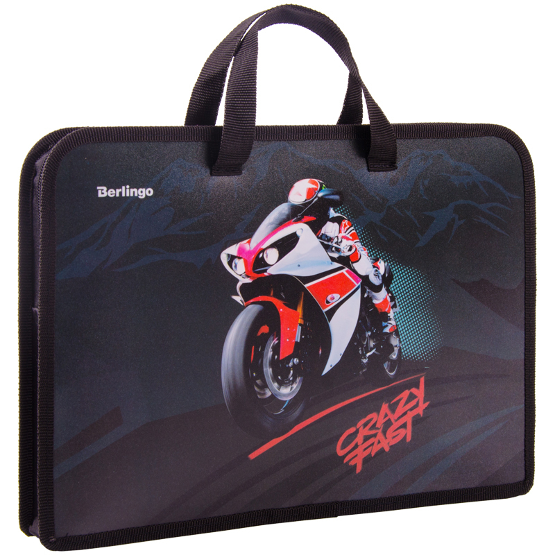 Папка с ручками 1 отделение, А4, Berlingo "Moto", пластик, на молнии, 40мм, PT-А4-4004