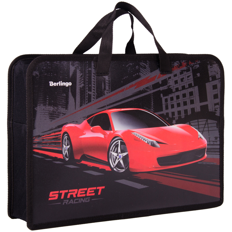 Папка с ручками 1 отделение, А4, Berlingo "Red car", пластик, на молнии, 75мм, PT-А4-7503