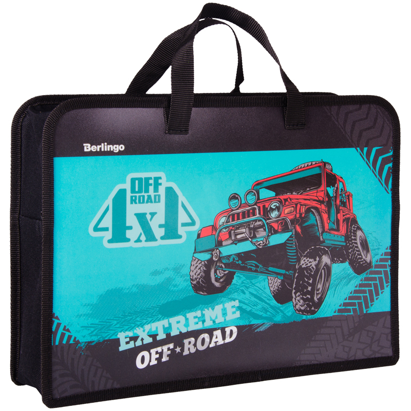 Папка с ручками 1 отделение, А4, Berlingo "Джип", пластик, на молнии, 75мм, PT-А4-7504