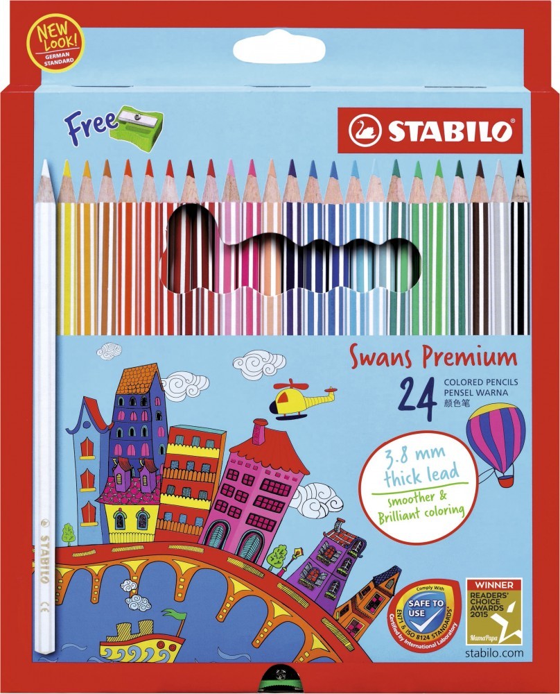 НАБОР ЦВЕТНЫХ КАРАНДАШЕЙ STABILO SWANS PREMIUM EDITIONAL В ВЫДВИГАЮЩЕМСЯ ФУТЛЯРЕ-ПОДСТАВКЕ, 24 ЦВЕТА + ТОЧИЛКА, КАРТОН