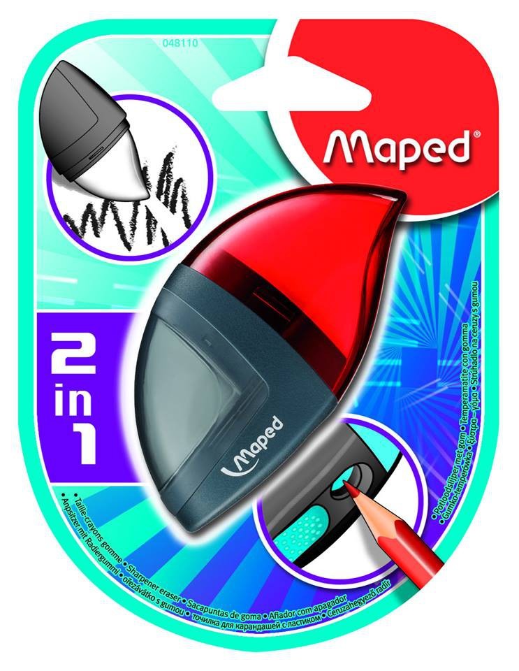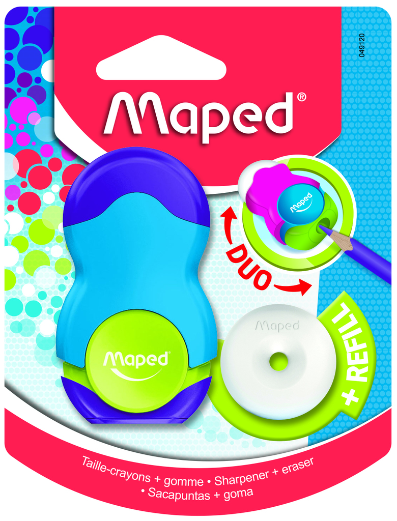 LOOPY 2в1 Точилка 1 отверстие + ластик, с контейнером и дополнительным ластиком, цветная, в блистере НОВИНКА