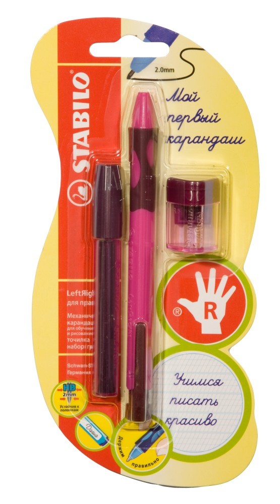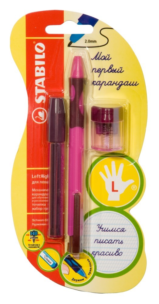 НАБОР STABILO LEFTRIGHT Д/ЛЕВШЕЙ: МЕХАНИЧЕСКИЙ КАРАНДАШ, ГРИФЕЛИ, ТОЧИЛКА. КОРПУС РОЗОВЫЙ, БЛИСТЕР. Вопросы по товару