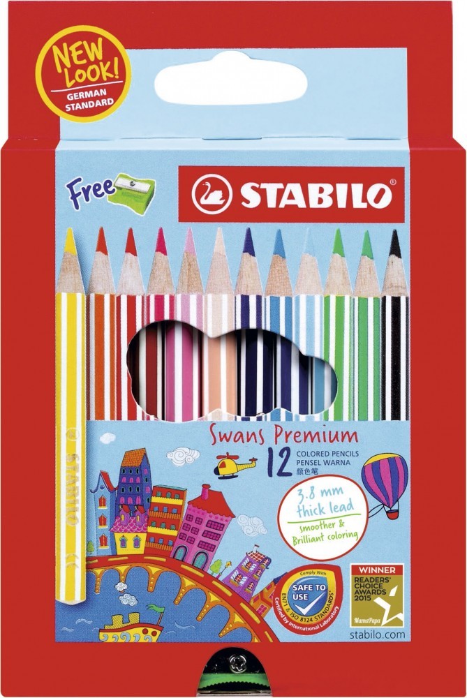 НАБОР ЦВЕТНЫХ КАРАНДАШЕЙ STABILO SWANS PREMIUM EDITIONAL В ВЫДВИГАЮЩЕМСЯ ФУТЛЯРЕ-ПОДСТАВКЕ, 12 ЦВЕТОВ + ТОЧИЛКА, КАРТОН