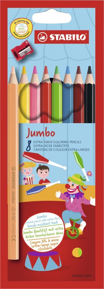 НАБОР ЦВЕТНЫХ КАРАНДАШЕЙ STABILO JUMBO УТОЛЩЕННЫЕ 8 ЦВ+ТОЧИЛКА, КАРТОН