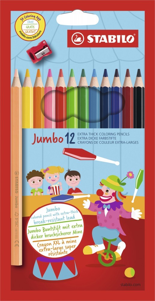 НАБОР ЦВЕТНЫХ КАРАНДАШЕЙ STABILO JUMBO УТОЛЩЕННЫЕ 12 ЦВ+ТОЧИЛКА, КАРТОН