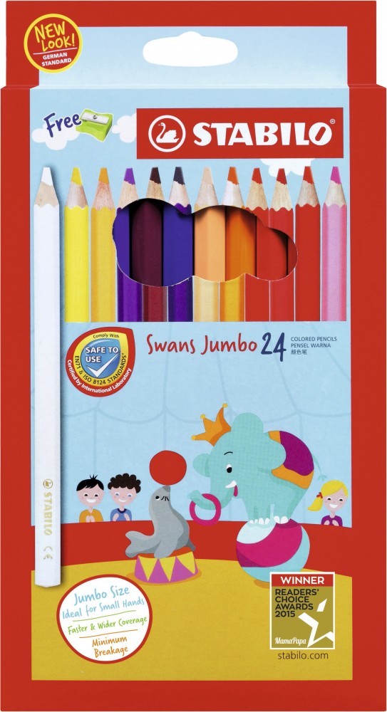 НАБОР УТОЛЩЕННЫХ ЦВЕТНЫХ КАРАНДАШЕЙ STABILO SWANS JUMBO В ВЫДВИГАЮЩЕМСЯ ФУТЛЯРЕ-ПОДСТАВКЕ, 24 ЦВЕТА + ТОЧИЛКА, КАРТОН Вопросы по товару