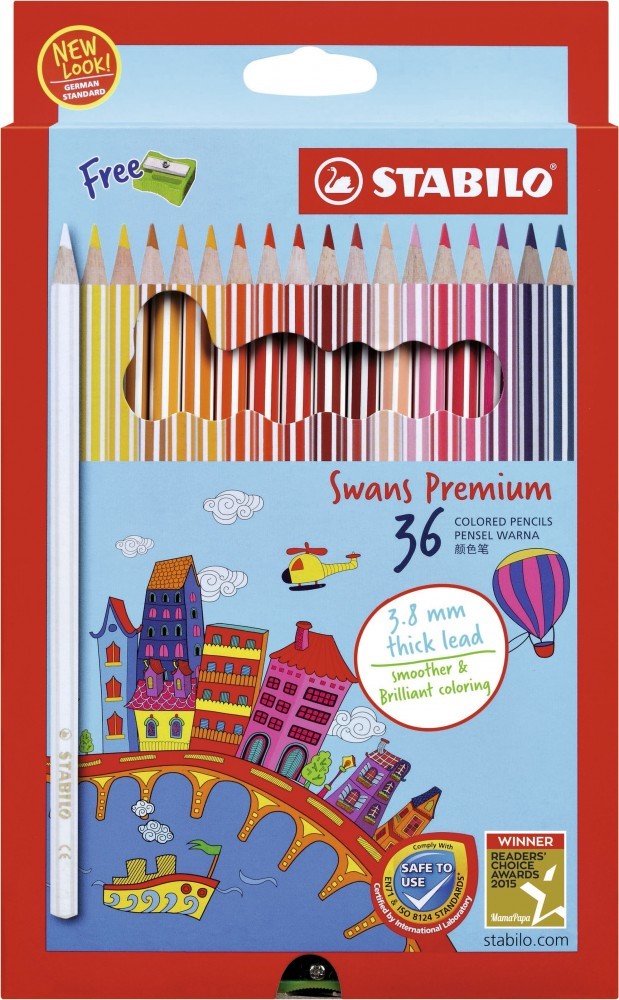 НАБОР ЦВЕТНЫХ КАРАНДАШЕЙ STABILO SWANS PREMIUM EDITIONAL В ВЫДВИГАЮЩЕМСЯ ФУТЛЯРЕ-ПОДСТАВКЕ, 36 ЦВЕТОВ + ТОЧИЛКА, КАРТОН Вопросы по товару