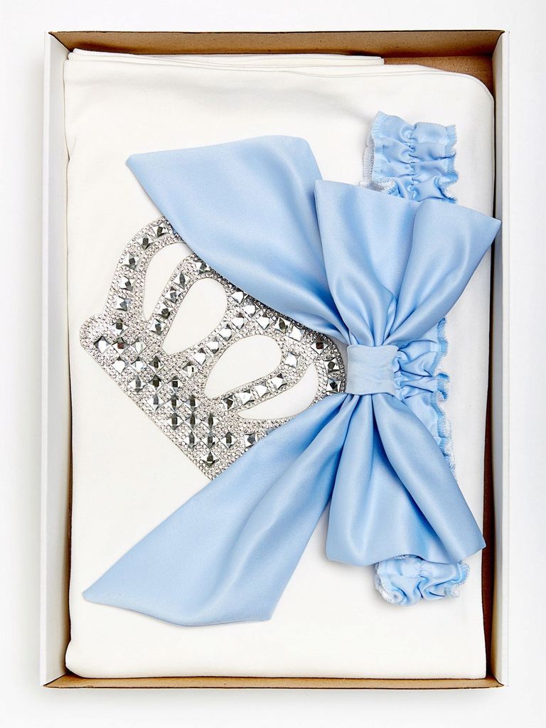 Плед трикотажный с короной и бантом "Император" (голубой бант)Вопросы по товару