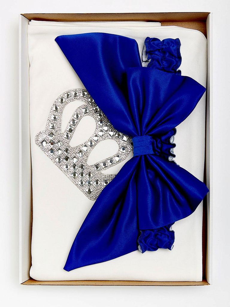 Плед трикотажный с короной и бантом "Император" (синий бант)Вопросы по товару