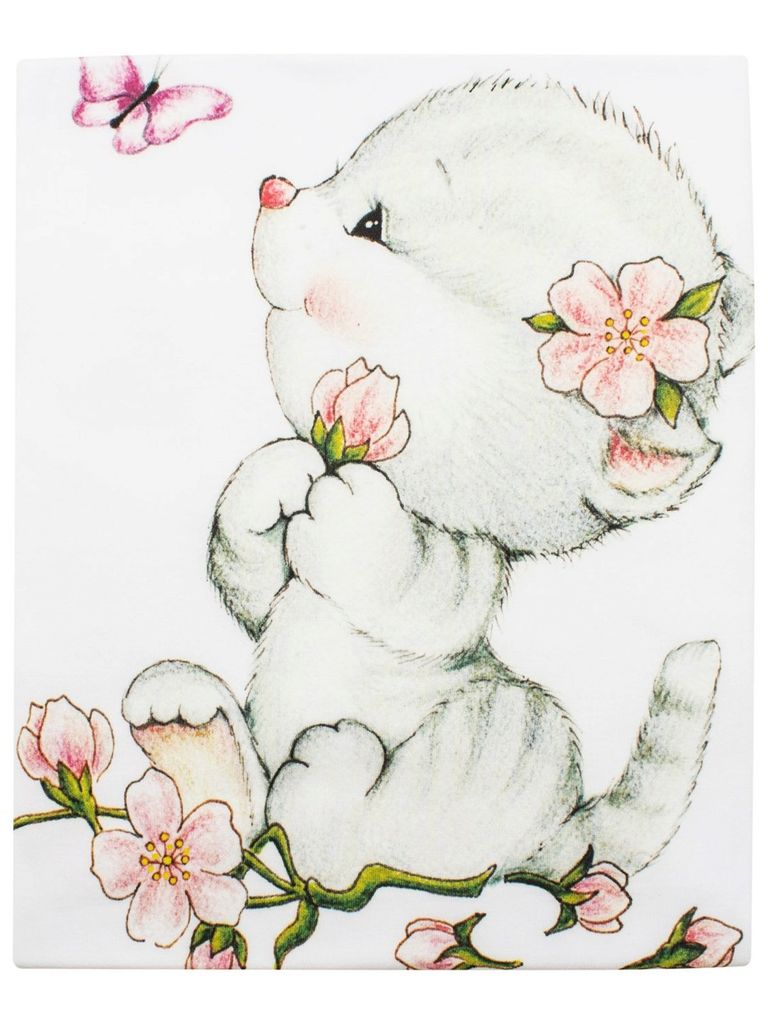 Пеленка - предмет первой необходимости в комоде новорожденного малыша. Luxury Baby делает пеленки не только полезными и удобными, но и невероятно красивыми. Трикотажная пеленка "Киска с бабочкой" - эт... Показать описаниео нежность, забота и теплота, заключенные в один квадратный метр самой лучшей ткани интерлок ПЕНЬЕ. Тонкая, шелковистая структура пеленки отличается высокой прочностью. И ткань, и яркий рисунок не боятся ежедневной стирки, сохраняя свой первоначальный вид на протяжении долгого времени. Пеленка, с изображением ласкового серого котенка с розовым носиком в окружении бабочки и цветов, идеально подходит для первого базового гардероба новорожденной малышки. 100% хлопок и безопасные краски на водной основе позволяют использовать пеленки Luxury Baby даже для кожи новорожденных детей, склонных к аллергическим реакциям.