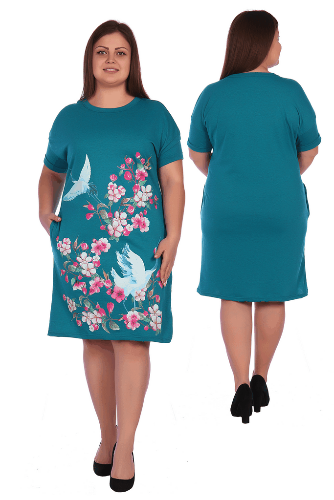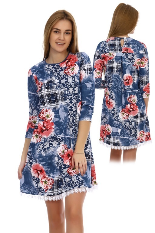 Яркое платье-туника с цветочным принтом Т813А