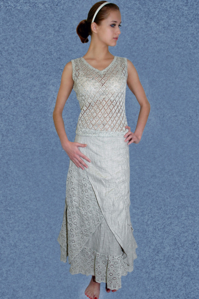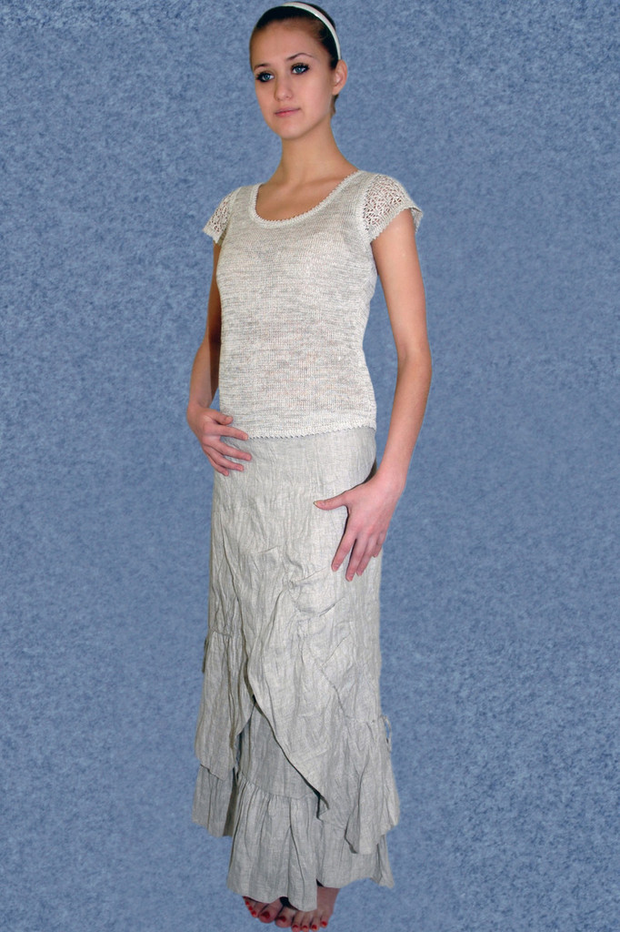Состав: 100% лен (пряжа) Длина юбки: 95 см. Рекомендуемый размер: 44-60 р.