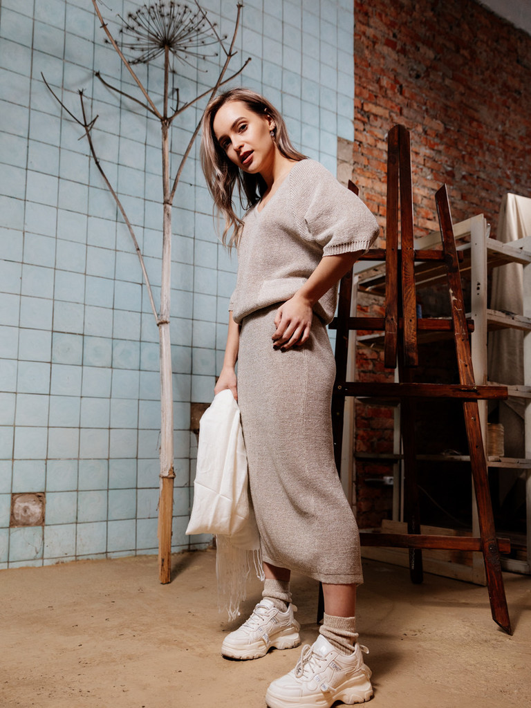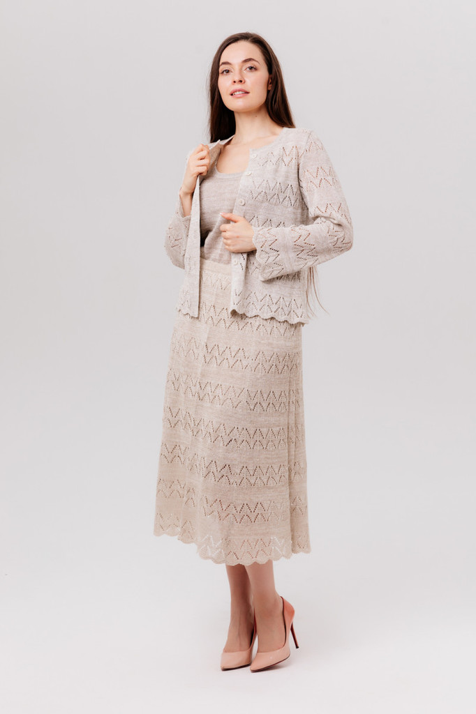 Состав: 60% лен, 40% п/ш. (пряжа) Длина изделия: 65 см. Рекомендуемый размер: 42-60 р.