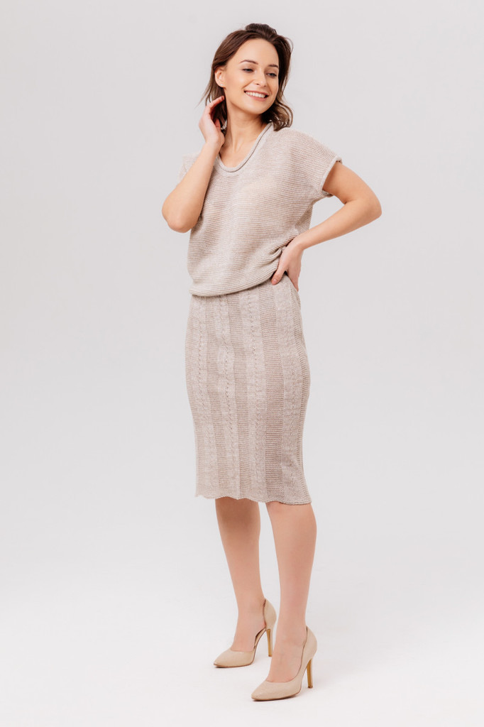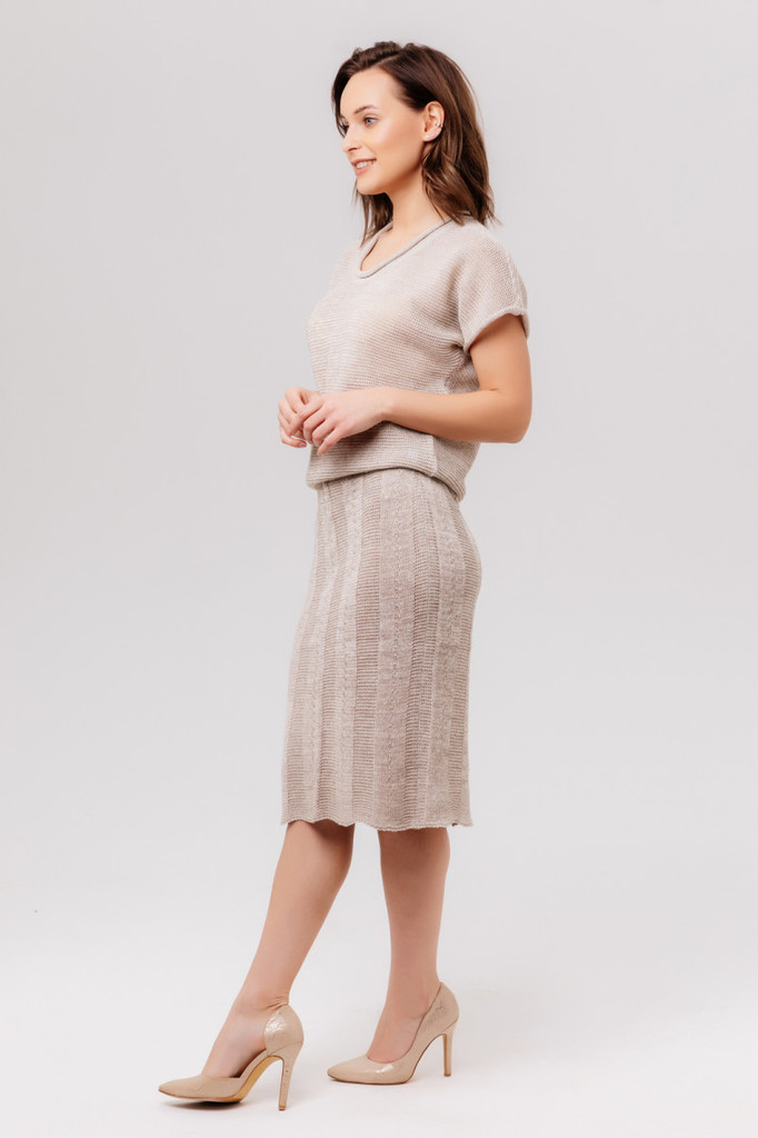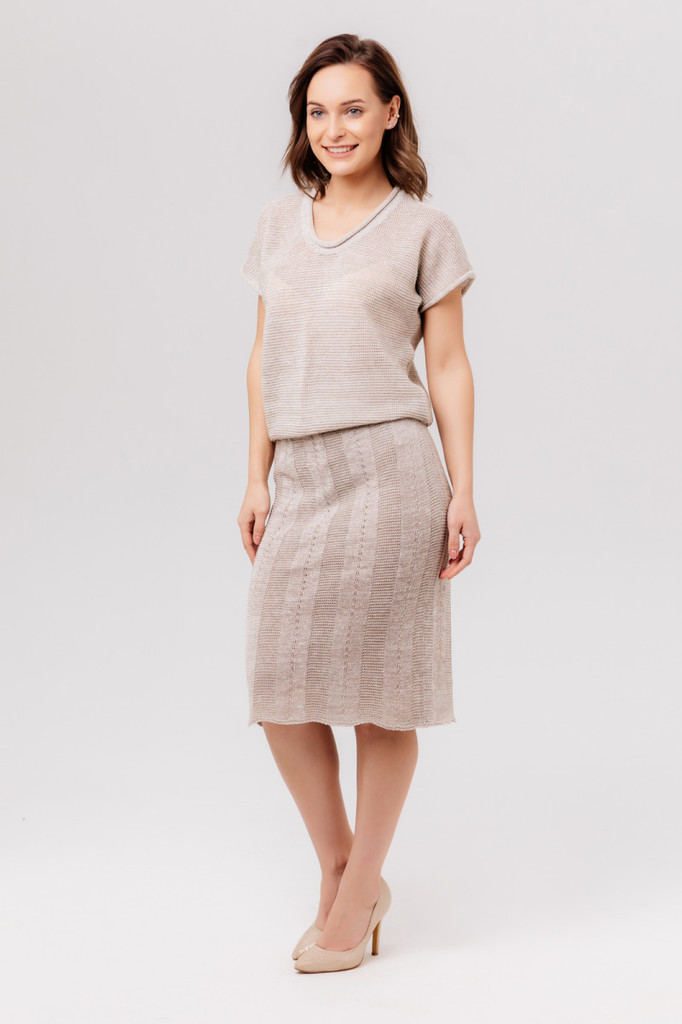 Состав: 100% лен (пряжа) Длина юбки: 60 см.Допустимые отклонения +- 2-3 см. Рекомендуемый размер: 42-54 р.