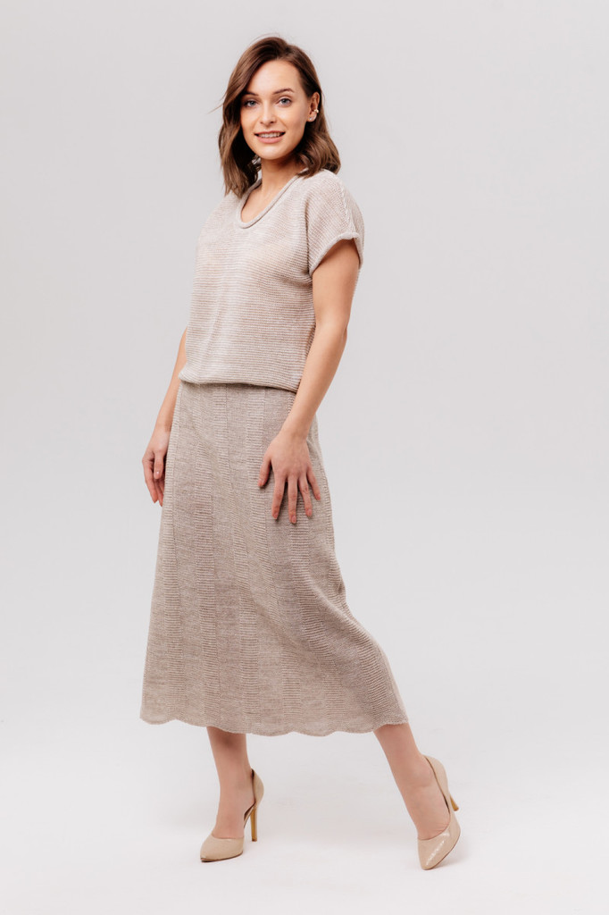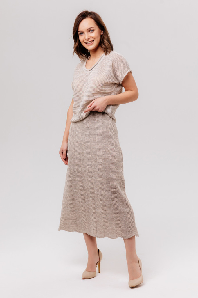 Состав: 100% лен (пряжа) Длина юбки: 83 см.Допустимые отклонения +-2-3 см. Рекомендуемый размер: 44-60 р.