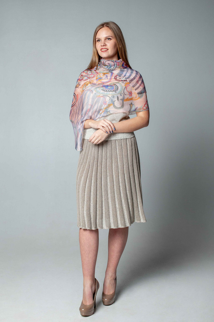 В ассортименте закупки - жакеты, джемпера, майки, жилеты, кардиганы, пончо, платья, сарафаны, юбки, брюки, пончо, палантины.