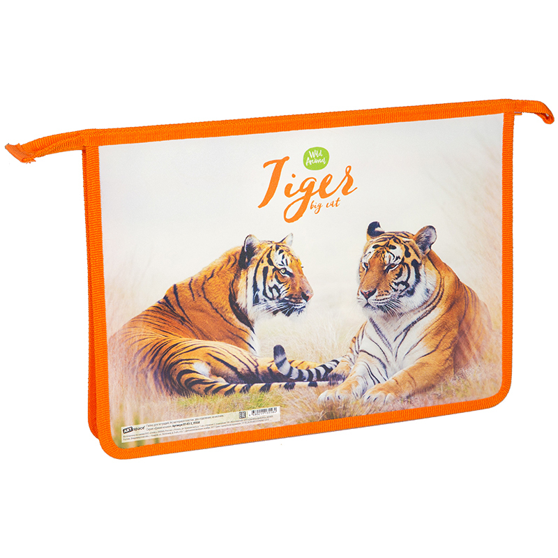 Папка для тетрадей 2 отделения, А5, ArtSpace Дикие кошки. Тигры, пластик, на молнии, ПТ-73-2_15542