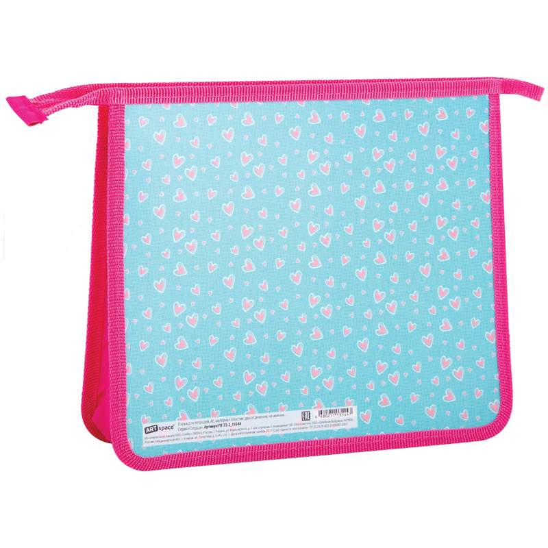 Папка для тетрадей 2 отделения, А5, ArtSpace Сердца, пластик, на молнии, ПТ-73-2_15544