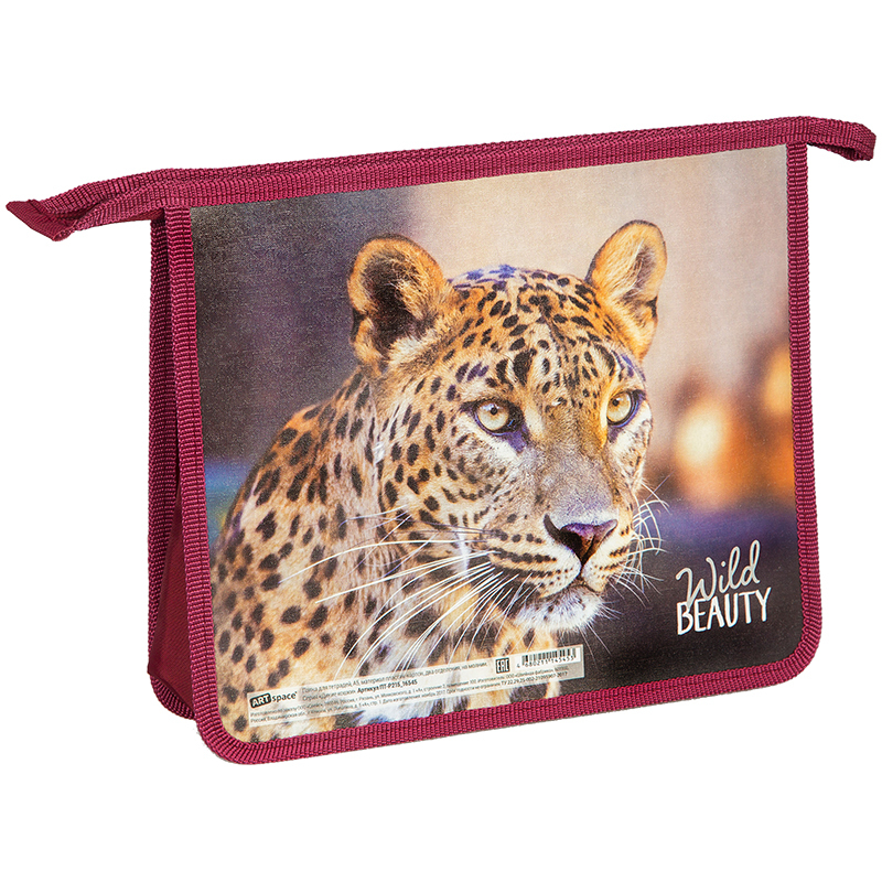 Папка для тетрадей 2 отделения, А5, ArtSpace Дикие кошки. Леопард, пластик/картон, на молнии, ПТ-Р215_16545 Вопросы по товару