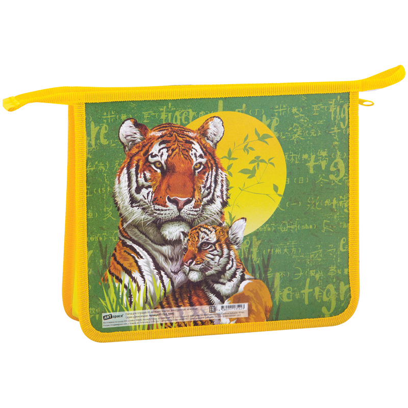 Папка для тетрадей 2 отделения, А5, ArtSpace Дикие кошки. Тигры, пластик, на молнии, ПТ-73-2_15542 Вопросы по товару