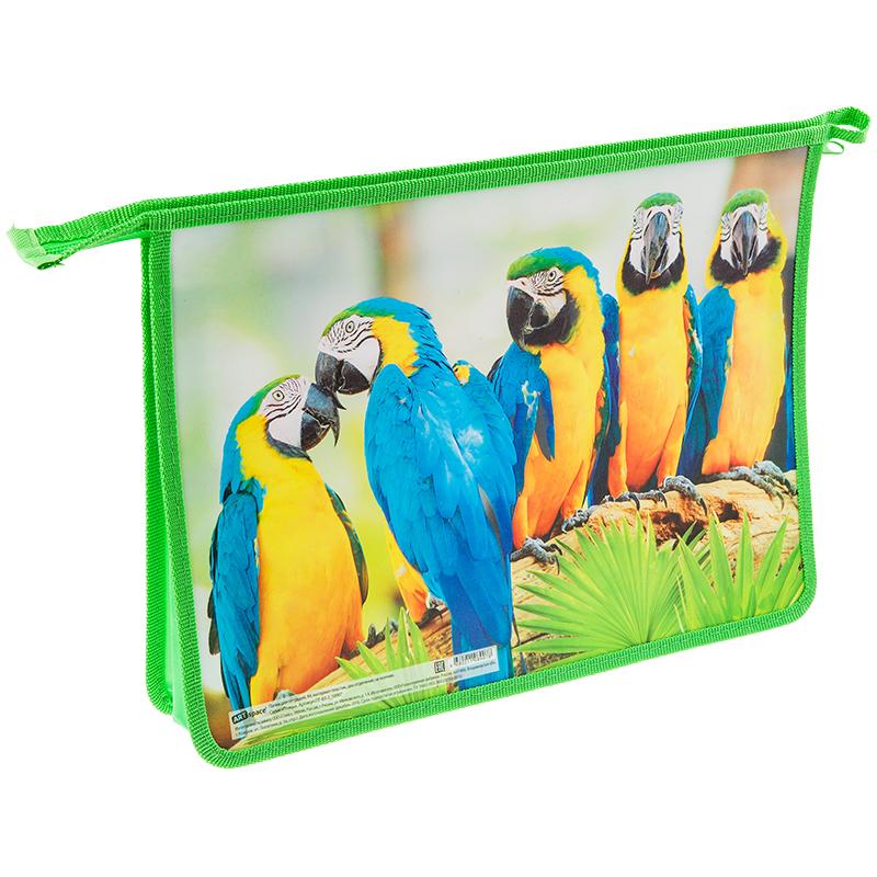 Папка для тетрадей 2 отделения, А4, ArtSpace Птицы, пластик, на молнии, ПТ-83/2_10907