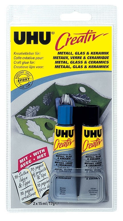 КЛЕЙ UHU КРЕАТИВ ДЛЯ МЕТАЛЛА, СТЕКЛА И КЕРАМИКИ 2*15МЛ, БЛИСТЕР