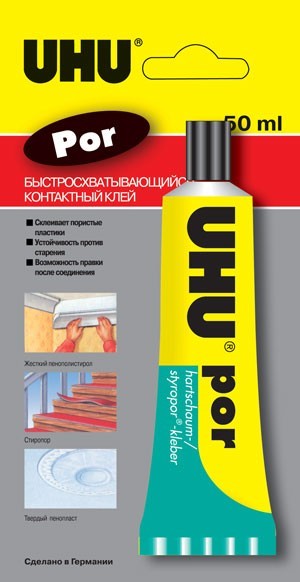 КЛЕЙ UHU POR ДЛЯ ПОРИСТЫХ ПЛАСТИКОВ, 50Г, БЛИСТЕР