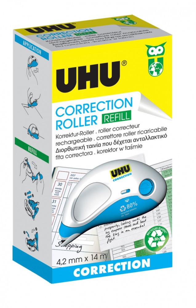 UHU КОРРЕКТИРУЮЩИЙ РОЛЛЕР-МЫШЬ  4,2ММ*12М, КАРТОННАЯ УПАКОВКА