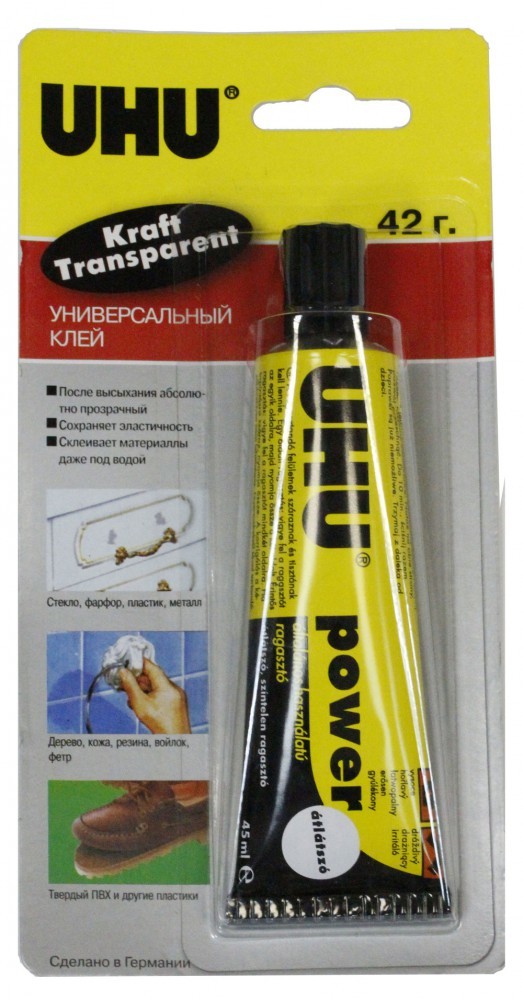 КЛЕЙ UHU KRAFT POWER TRANSPARENT УНИВЕРСАЛЬНЫЙ КОНТАКТНЫЙ, ПРОЗРАЧНЫЙ, 45Г, ИНДИВИДУАЛЬНАЯ УПАКОВКА Вопросы по товару