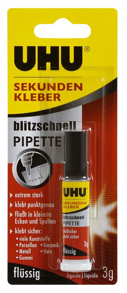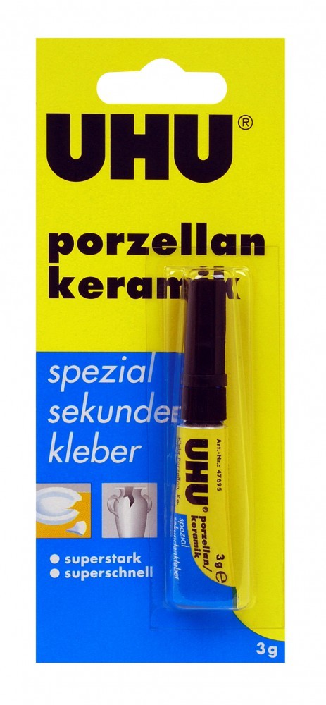 КЛЕЙ UHU PORZELLAN ДЛЯ КЕРАМИКИ, СЕКУНДНЫЙ, 3Г, БЛИСТЕР