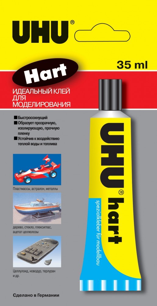 КЛЕЙ UHU HART ДЛЯ ЖЕСТКИХ ПЛАСТИКОВ,125Г, ИНДИВИДУАЛЬНАЯ УПАКОВКА