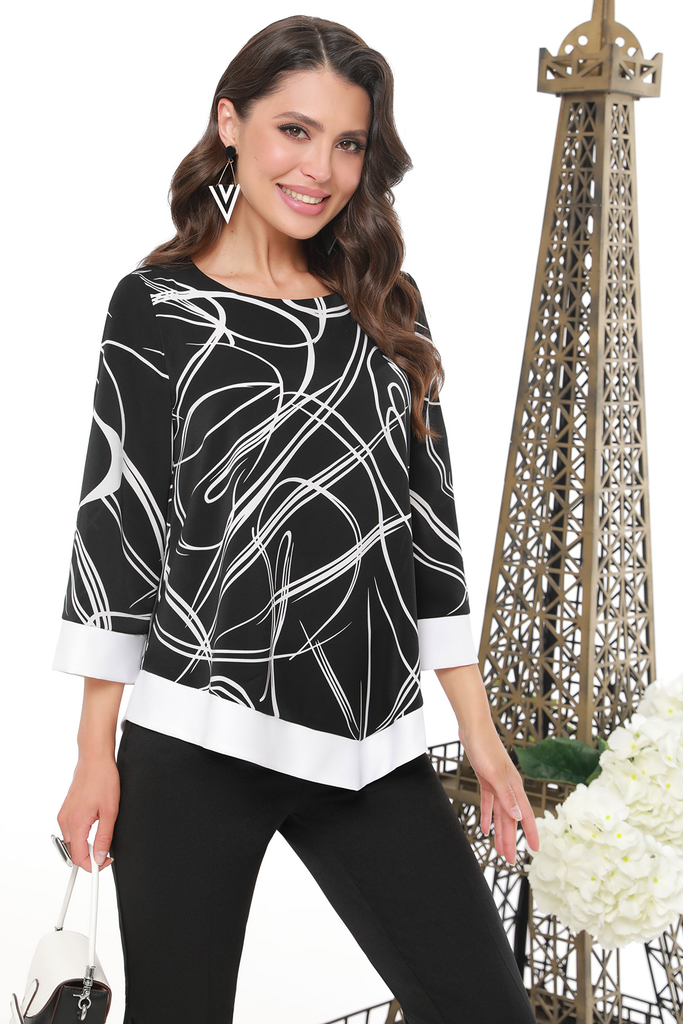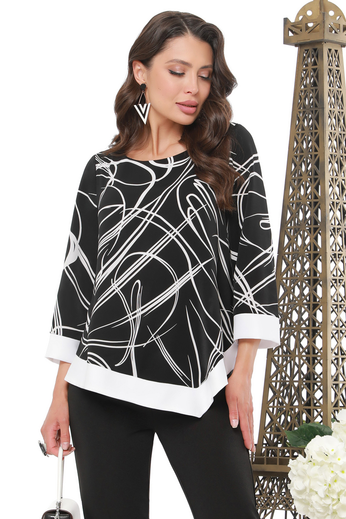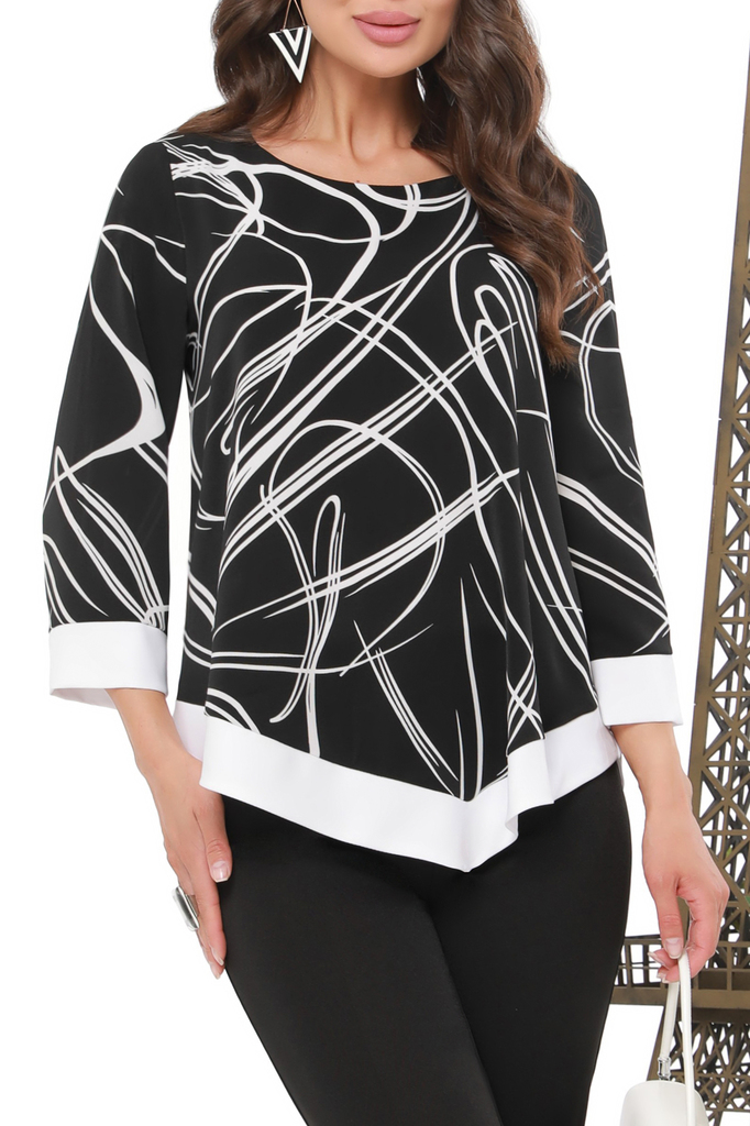 Асимметричная блузка с принтом — оригинальная модель, которая займет почетное место как в повседневном, так и в деловом гардеробе стильной женщины. Полуприлегающий крой, округлый вырез и рукава ? прид... Показать описаниеают легкости и элегантности. Асимметричный низ — не только изюминка блузки, но и хит сезона, который сразу укажет на то, что женщина в курсе последних модных тенденций. Благодаря свободному крою и приятной расцветке модель будет прекрасно смотреться на женщинах любой комплекции, не подчеркнет нюансы фигуры и не исказит пропорции. Блузка выполнена из легкой, приятной на ощупь ткани, которая не просвечивает и прекрасно переносит деликатную стирку при температуре до 30 градусов без отжима. Обмеры изделия Длина: 44 размер - 64 см 46 размер - 64 см 48 размер - 65 см 50 размер - 65 см 52 размер - 66 см 54 размер - 66 см 56 размер - 67 см Уход Бережная стирка при 30 градусах Дополнение Цвет изделия на фотографии может отличаться от фактического товара, что связано с искажением цветопередачи монитором, настройками фотоаппаратуры и прочими факторами
